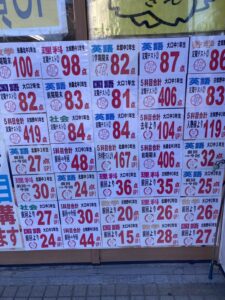 さて先月中旬から末におこなわれた定期テストの結果をもとに看板をリニューアルしました。