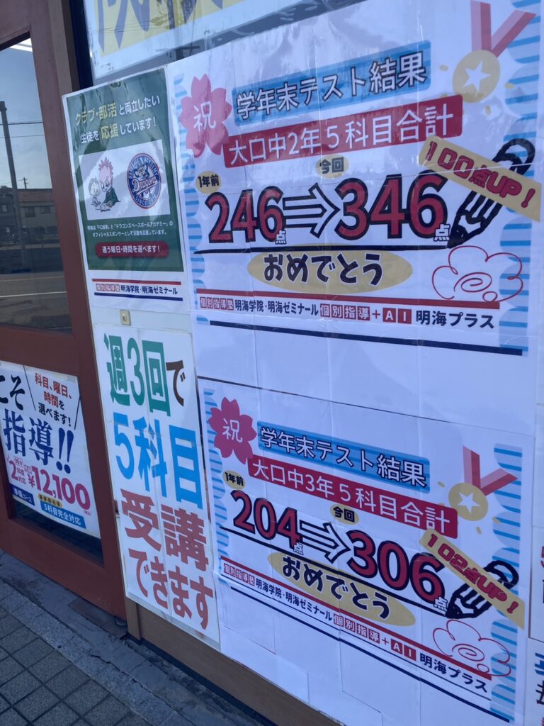北部中、古知野中、大口中、扶桑中、扶桑北中学区の皆さま 明海学院 江南江森校大島です。 3月になりましたね。 さて先月おこなわれた 学年末テストの結果をもとに 看板をリニューアル […]
