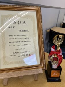 表彰状とトロフィーを授与されました【瑞穂市 穂積中、穂積北中、巣南中学区の個別指導塾 明海ゼミナール穂積校】