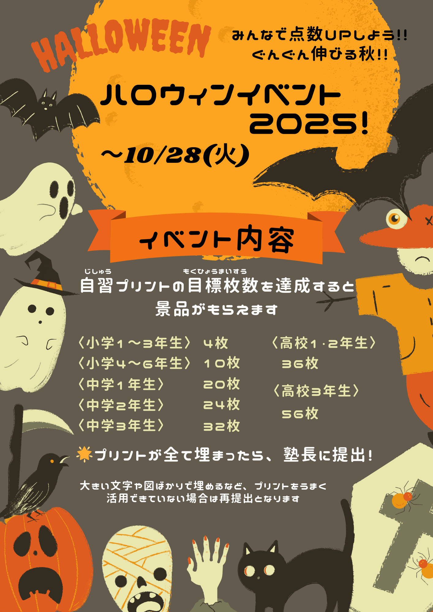 全員で成績UP!!🎃ハロウィンイベント開催決定🎃【一宮市 中部中 南部中 北部中学区の個別指導塾 明海学院 一宮駅前校】