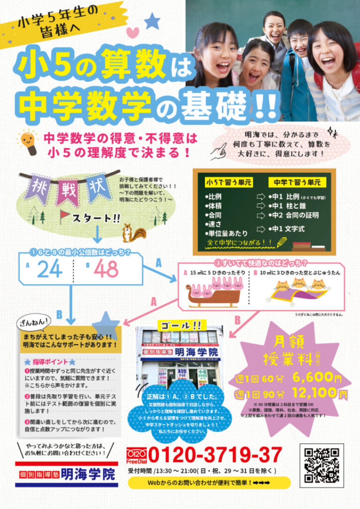 【小5】2学期の算数は油断大敵!【一宮市 中部中 南部中 北部中学区の個別指導塾 明海学院 一宮駅前校】