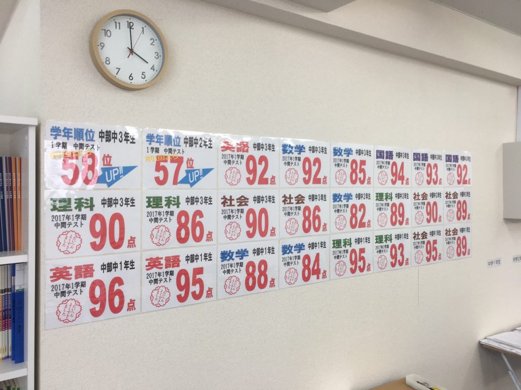 こんばんは。一宮駅前校の星野です。 教室に今回のテスト結果を掲示しました! 生徒たちは「あ!これ私だ!」とか「負けてられない!」とか良い反応でした。 今回の掲示物はどの生徒も,周りのライバルから刺激を受けて次のテストへの […]