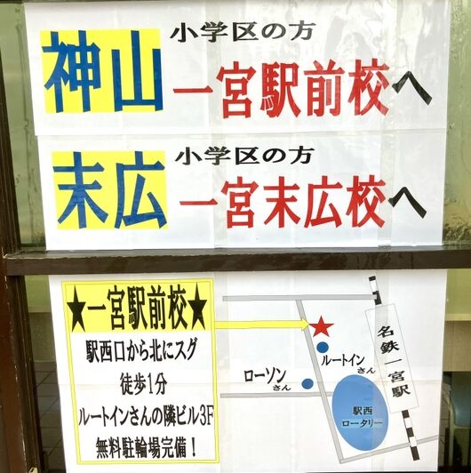 こんにちは!明海学院一宮駅前校です! この度、末広校後藤塾長の協力により、 末広校の玄関に一宮駅前校の案内をドカンと掲示してもらいました!! 一宮駅前校は、近隣の一宮末広校が大人気のため201 […]