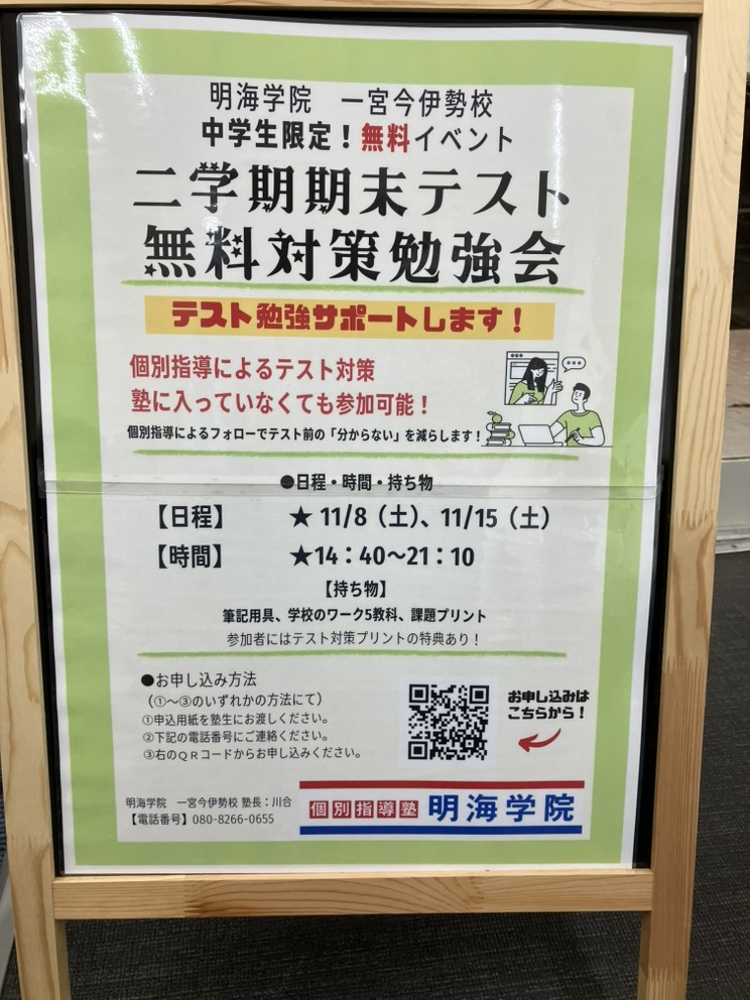 テスト対策勉強会を実施します!【一宮市 今伊勢中 北部中 葉栗中 奥中 尾西三中学区の個別指導塾 明海学院 一宮今伊勢校】