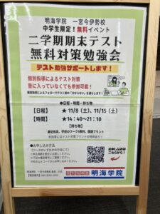 2学期期末テストに向けて!【一宮市 今伊勢中 北部中 葉栗中 奥中 尾西三中学区の個別指導塾 明海学院 一宮今伊勢校】