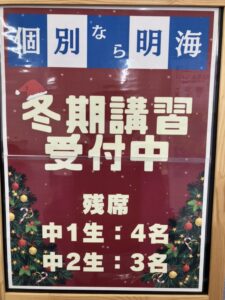 冬期講習のお問合せ、ありがとうございます!!!【一宮市 今伊勢中 北部中 葉栗中 奥中 尾西三中学区の個別指導塾 明海学院 一宮今伊勢校】