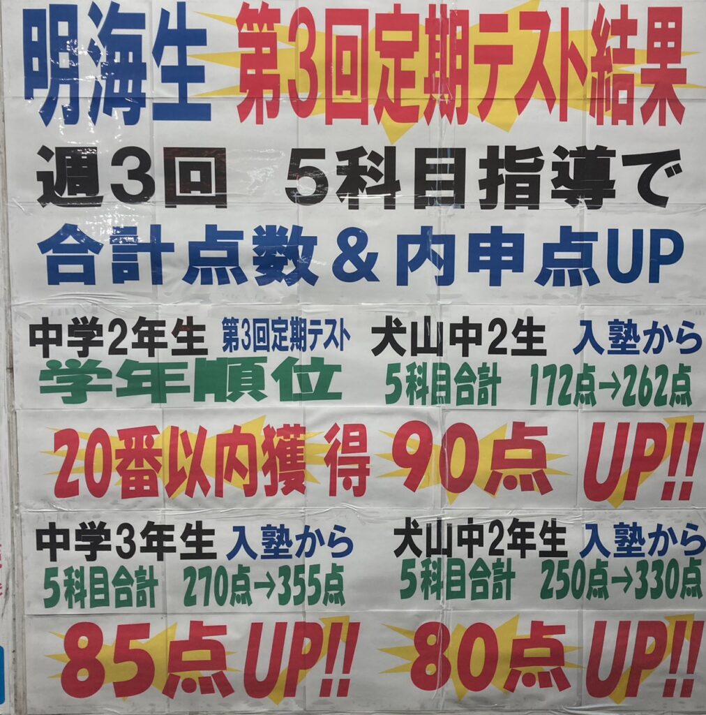 外看板貼り替えました!成績アップしているお子様増えてます!【犬山中 城東中 南部中 東部中 扶桑北中学区の個別指導塾 明海学院 犬山校】