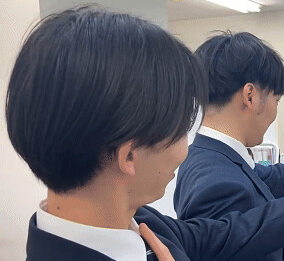 ↑写真撮影前に自分のスマホで身だしなみを整える西岐阜校の照井塾長と木曽川校の渡邊副塾長