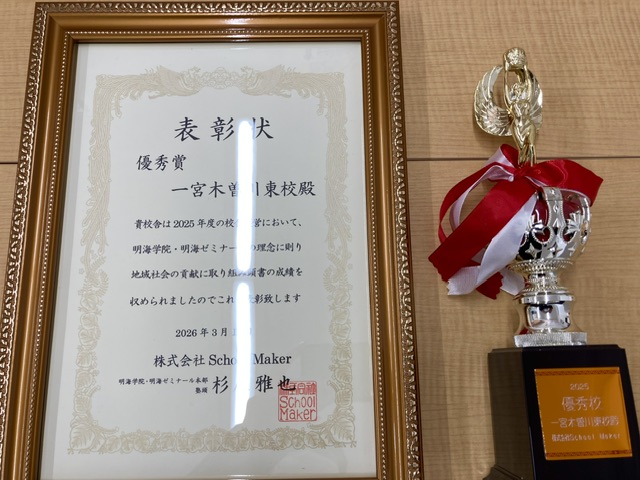 このたび、「優秀賞」をいただきました!【木曽川中・葉栗中・北方中・今伊勢中・浅井中・木曽川東小・葉栗小・葉栗北小・黒田小の個別指導塾 明海学院 一宮木曽川東校】
