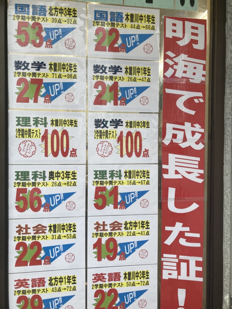 カテゴリー: 塾生の保護者の皆様へ 教室からのお知らせ 木曽川校の成績アップ事例
