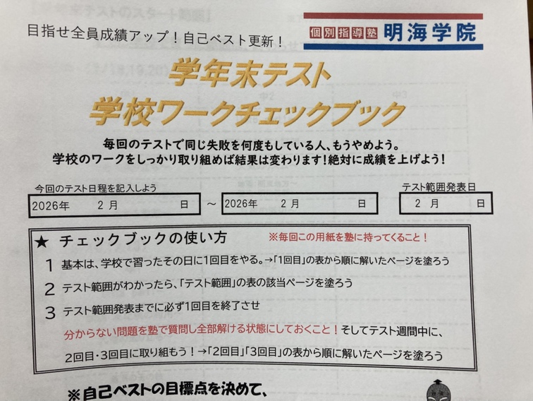 【中1・2】学年末テストに向けて【木曽川中・北方中・奥中・木曽川西小・黒田小・北方小・奥小エリアの個別指導塾 明海学院 一宮木曽川校】