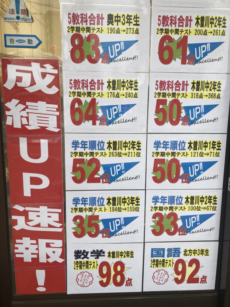 生徒の頑張りを一目見よう…【木曽川中・北方中・奥中・木曽川西小・黒田小・北方小・奥小エリアの個別指導塾 明海学院 一宮木曽川校】