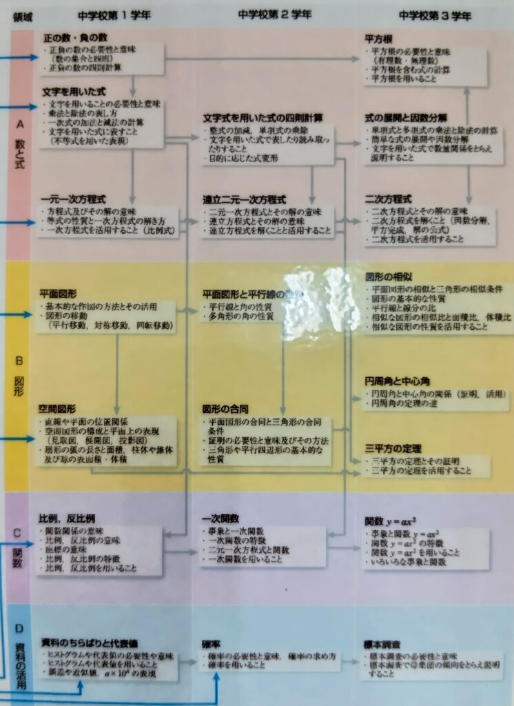 上記は、中学数学の「単元相関図」というものです。