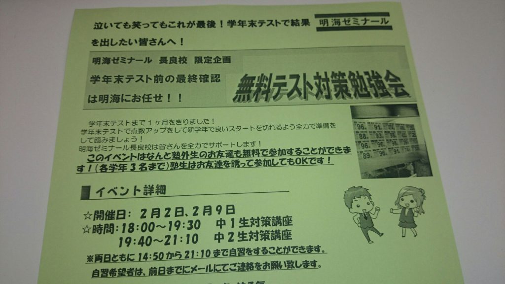 テスト対策勉強会を実施します!【東長良中・長良中・青山中学区の個別指導塾 明海ゼミナール 長良校】