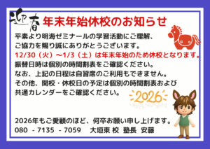 本年もお世話になりました。~年末のご挨拶~【大垣市・安八町 / 東中 東安中 登龍中 江並中 星和中学区の個別指導塾 明海ゼミナール 大垣東校】 大垣市・安八町の皆様へ