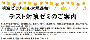 【塾外生も参加可】無料テスト対策ゼミを開催します!!【大垣市・垂井町・養老町 / 西部中 赤坂中 不破中 高田中 垂井北中学区の個別指導塾 明海ゼミナール 大垣西校】