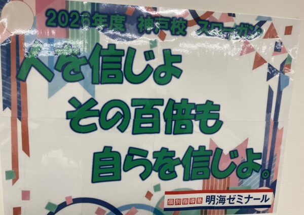 生徒の皆さんには他者(先生や保護者など)の大切さと同時に自分自身への信じることを伝えたいと思い、こちらのスローガンにしました。