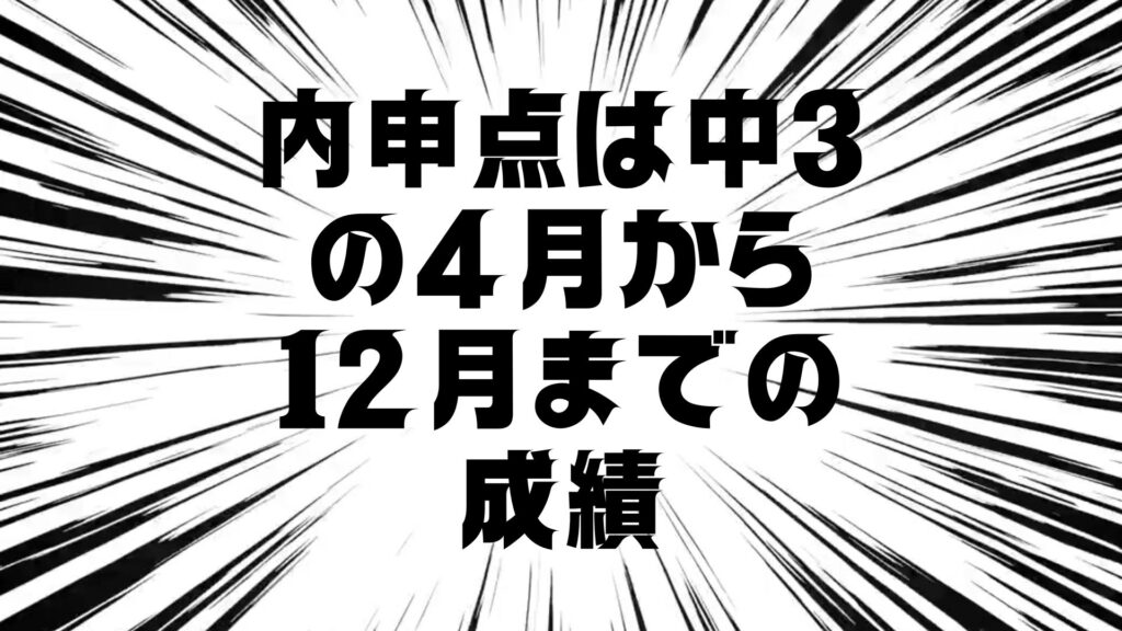 愛知県は、内申点は中3の4月から12月までの成績となりますので、