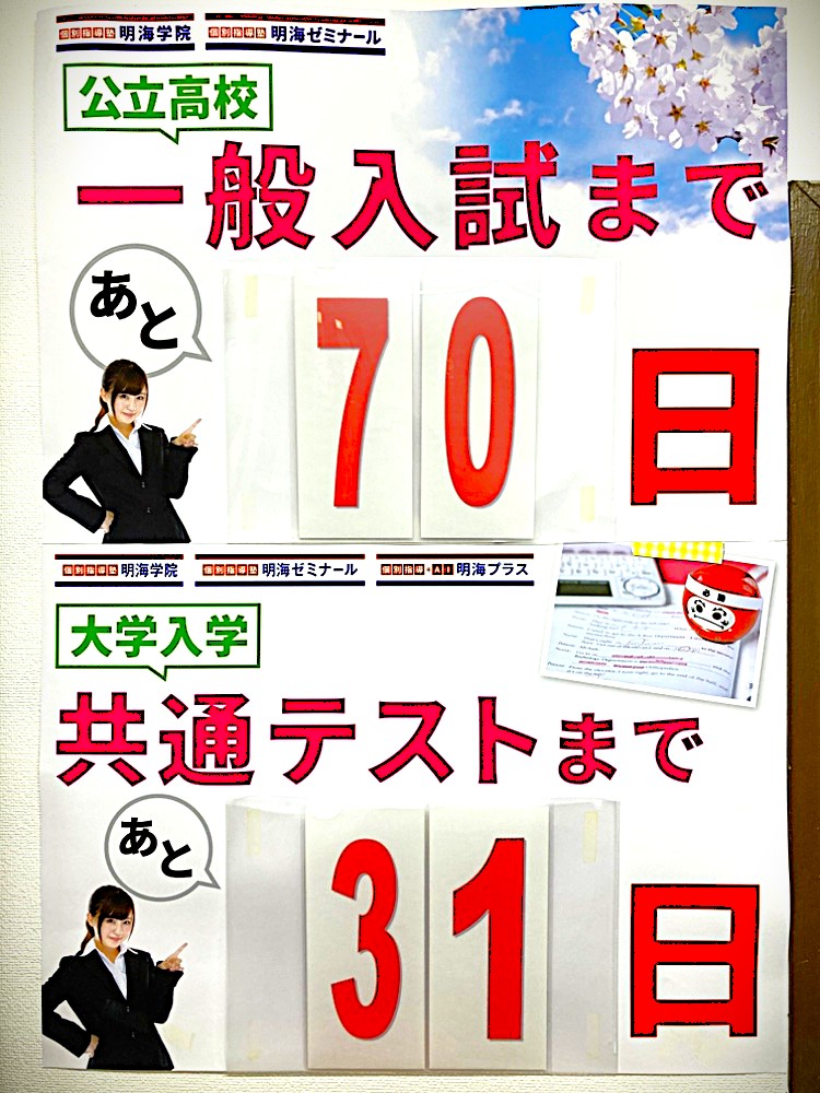 【中3生】あと70日【一宮市 木曽川 北方 奥 葉栗 尾西第三中学区の個別指導塾 明海学院 一宮新木曽川駅前校】