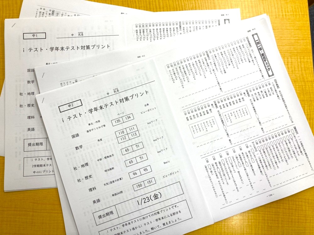 i テスト、学年末テストに向けて対策プリントを作成しました。