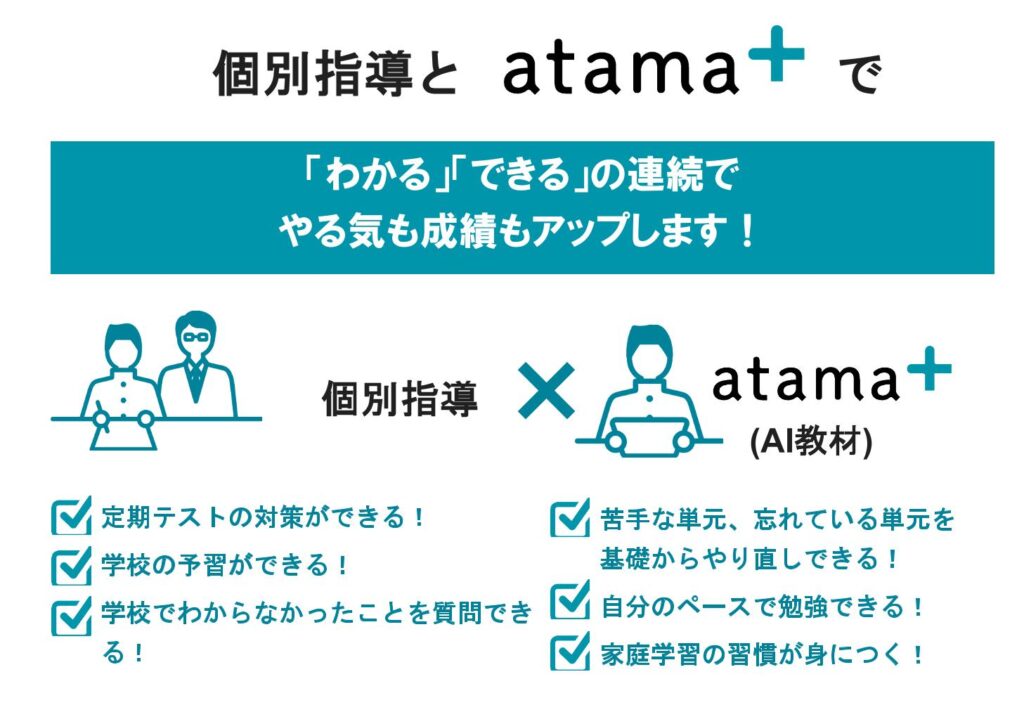 atama+(アタマプラス)だけに頼ることなく、個別指導での授業で生徒の理解を加速させます。
