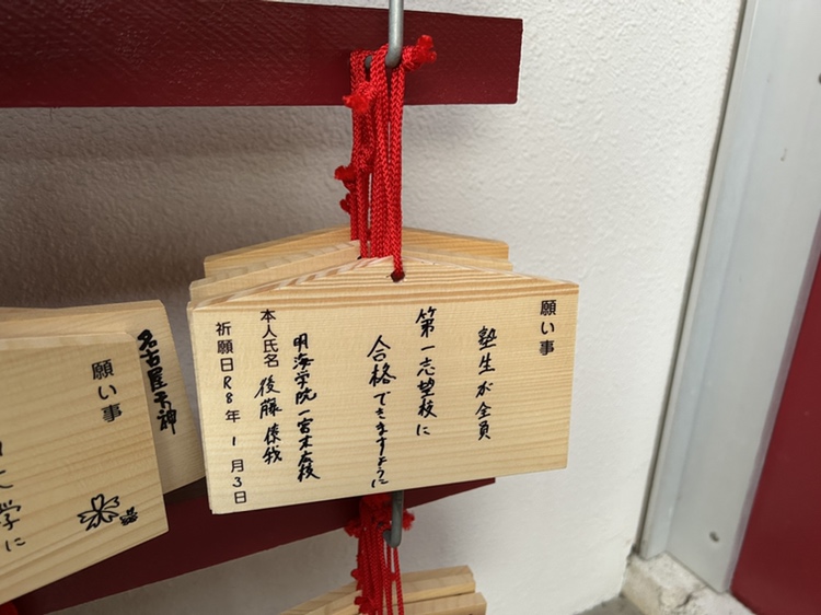 ↓今年も絵馬に「塾生が全員第一志望校に合格できますように」と記してきました。