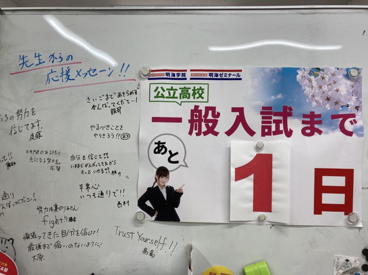 今まで自分がしてきた努力を信じ、自信をもって入試に挑みましょう。