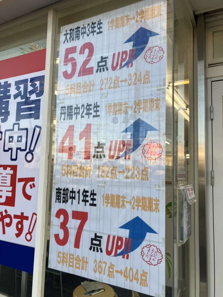 【大和南中3年】1学期期末 → 2学期期末 5教科272点 → 324点 52点up!!