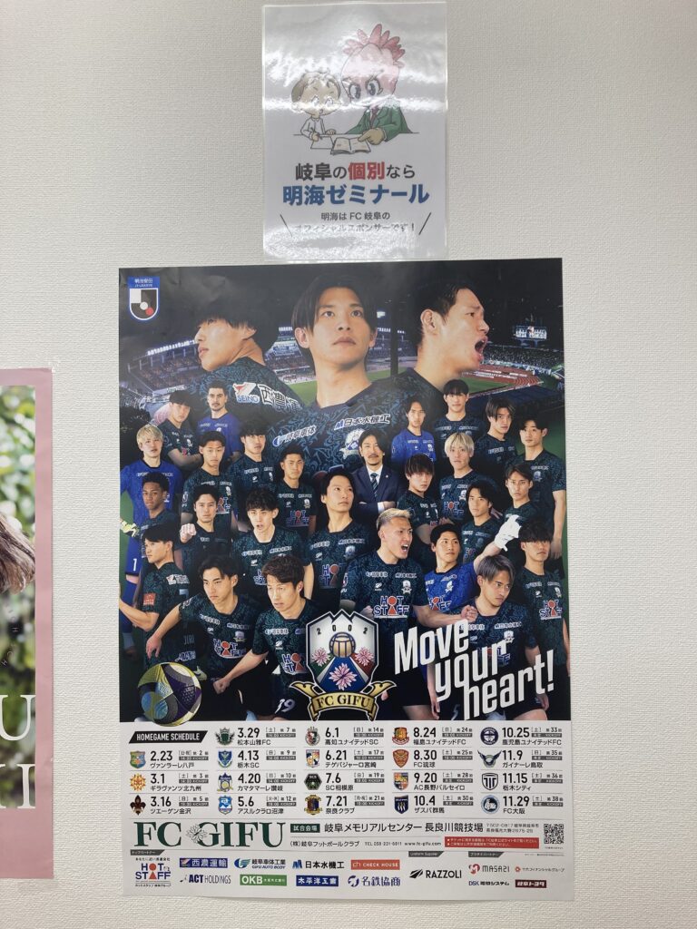こんにちは!明海ゼミナール柳津校の藤田です! 今回は、校舎にFC岐阜の新しいポスターが届いたので、報告させていただきます! 明海は、FC岐阜を応援しています! 私は、明海野球部の監督もしていますがサッカーも […]